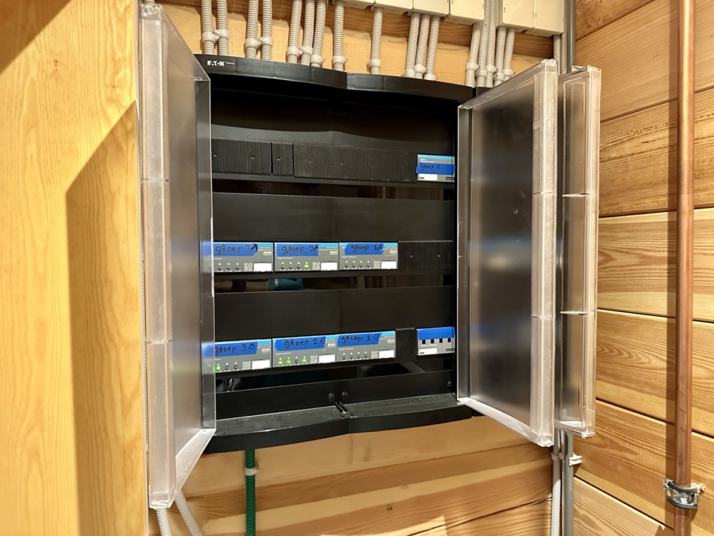 Logbouw woning in Vierhouten, waar we de elektrische installatie en diverse moderne voorzieningen hebben aangebracht.